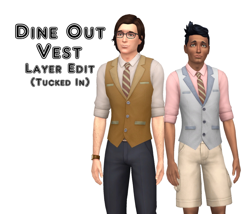 Now then, the vest that came with Dine Out is probably my favorite CAS piece in the pack but it bugs me to no end when they make an item that is obviously meant to tuck into pants just doesn't. This corrects that issue and makes it so that they do now tuck, which just makes the whole piece look much more professional.