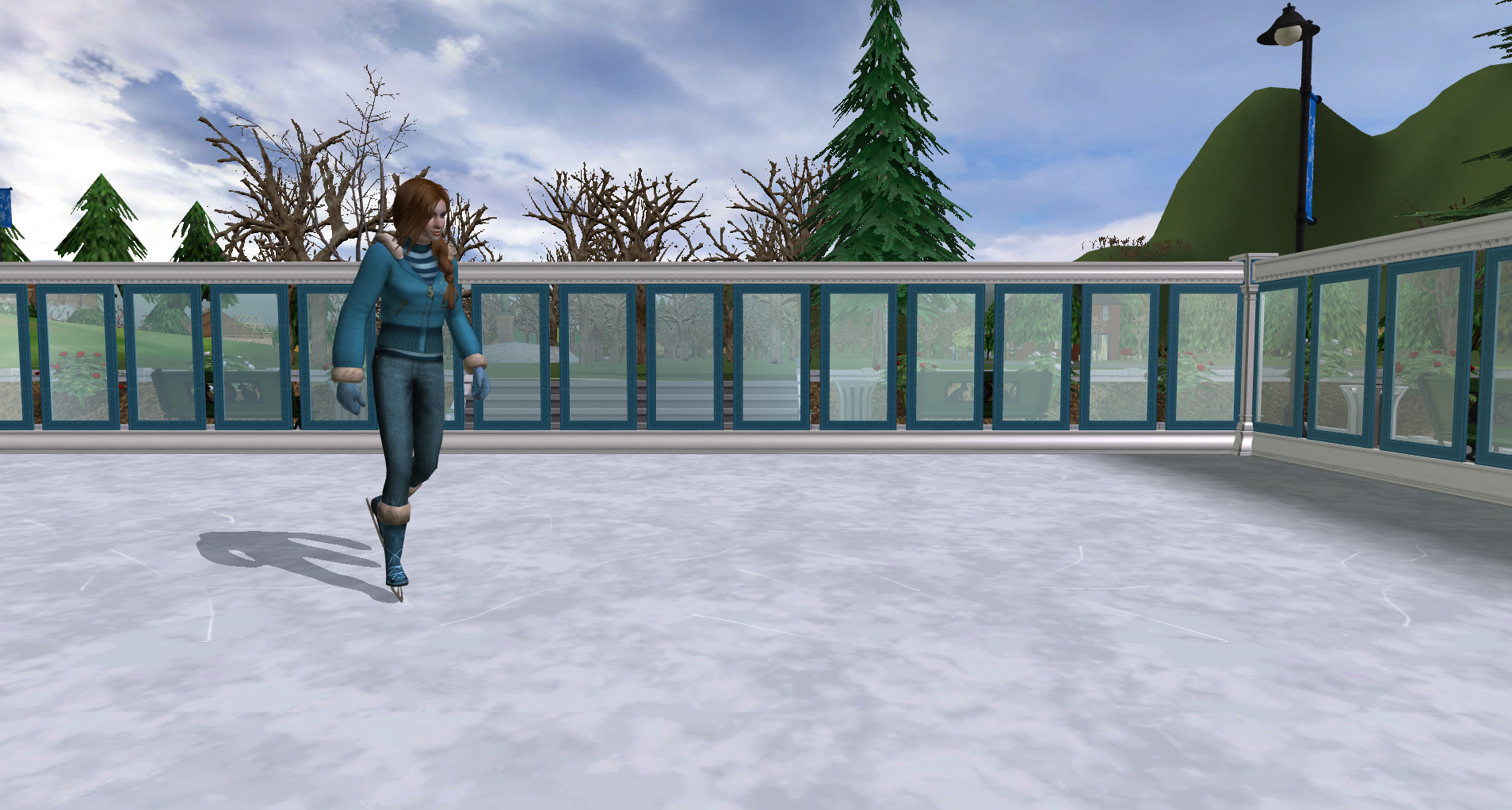 Anyway, howdy! While in process of making my calendar contest entry for December, I realised I needed a "fake" ice skating rink desperately for the sake of convenient posing and decorating. However, I couldn't find a decent ice terrain paint to mimic it... here's where Lowedeus kindly came to help, extracting the in-game pond ice texture for me. I imported it back into the game as a terrain cover and the result you can see on the screenshots. I like how scratched lines on the texture look like blade traces