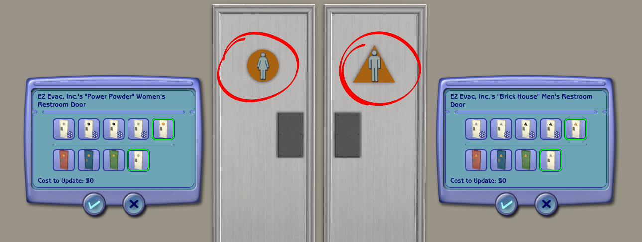 Restroom doors - icon replacements and equality!