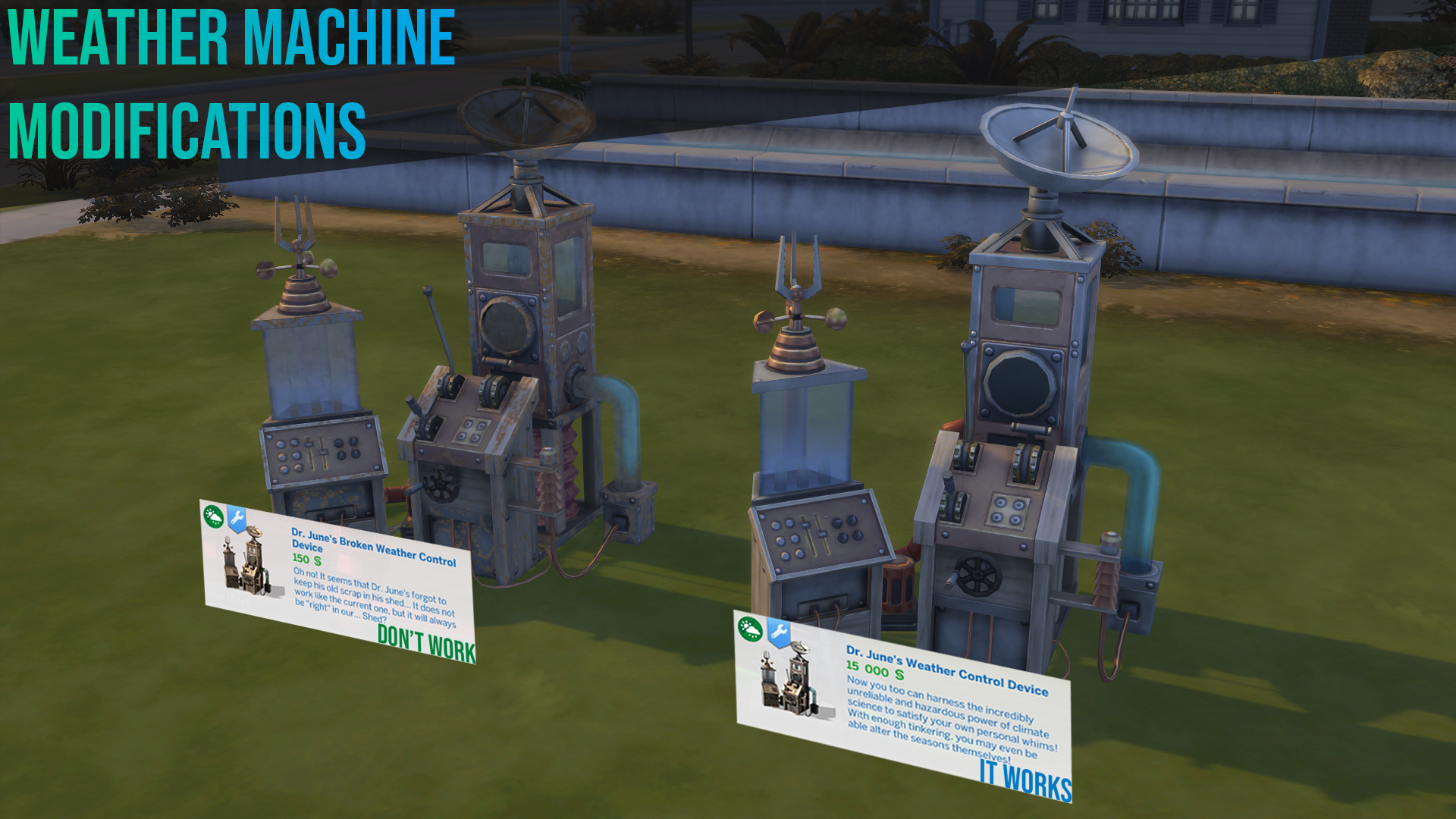- Add Broken Weather Machine - Adds a broken, rusty weather machine. Does not work. Costs §150.