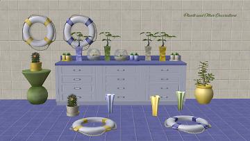 La mer! The sea. Shades of blue with sandy spots and a few splashes of yellow and green. As usual I've tried to make enough base game recolours for the set to be useful for most any game configuration, but there's a bit of FT, KBS, and FFS in there as well. Some new walls and floors come with, all files areCompressorized, and a Collection file and icon are included. Very mostly Maxis, but there are also a couple of recolours of this mesh: