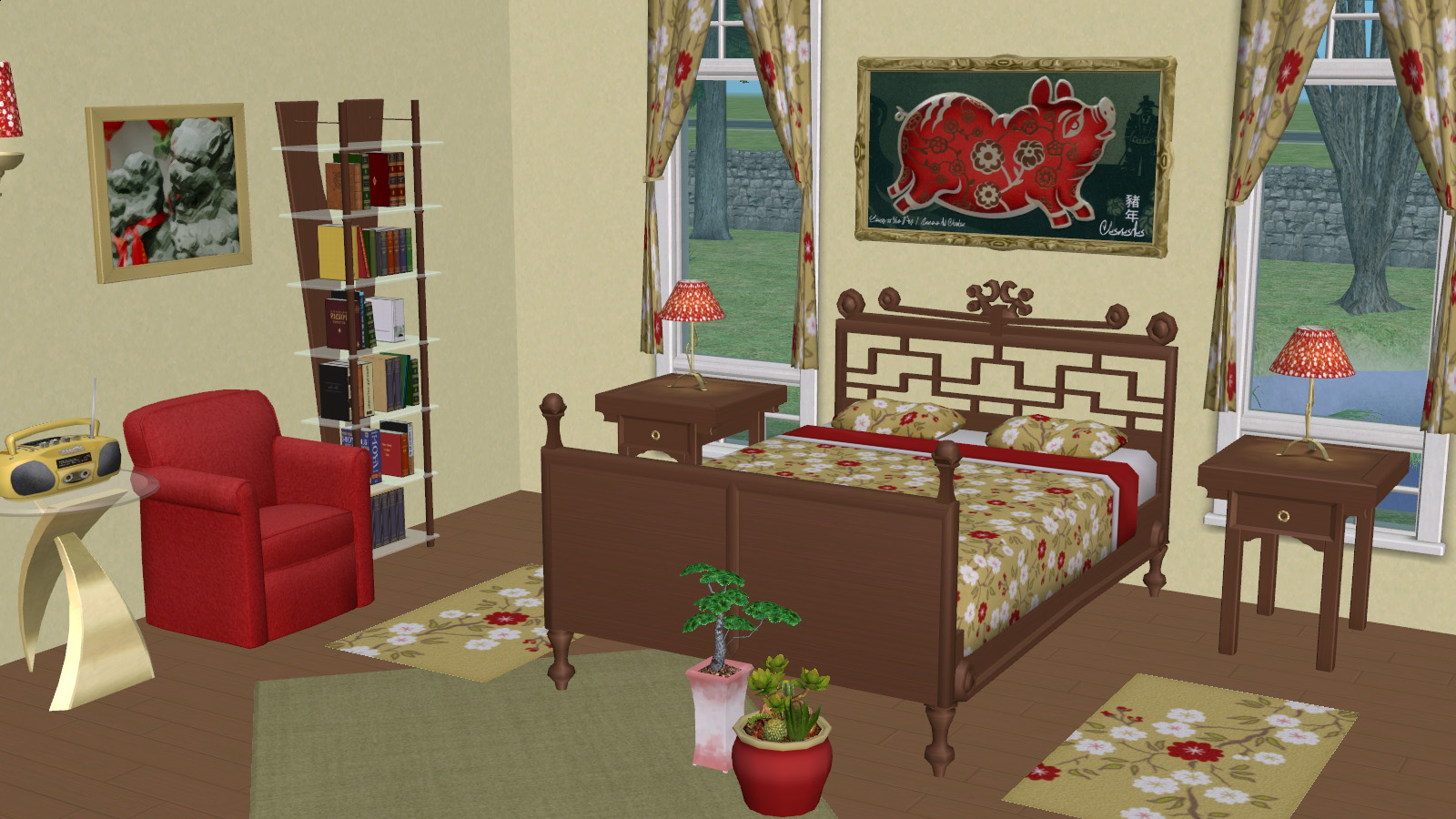 | Lunar New Year Chinese bedroom in red and gold