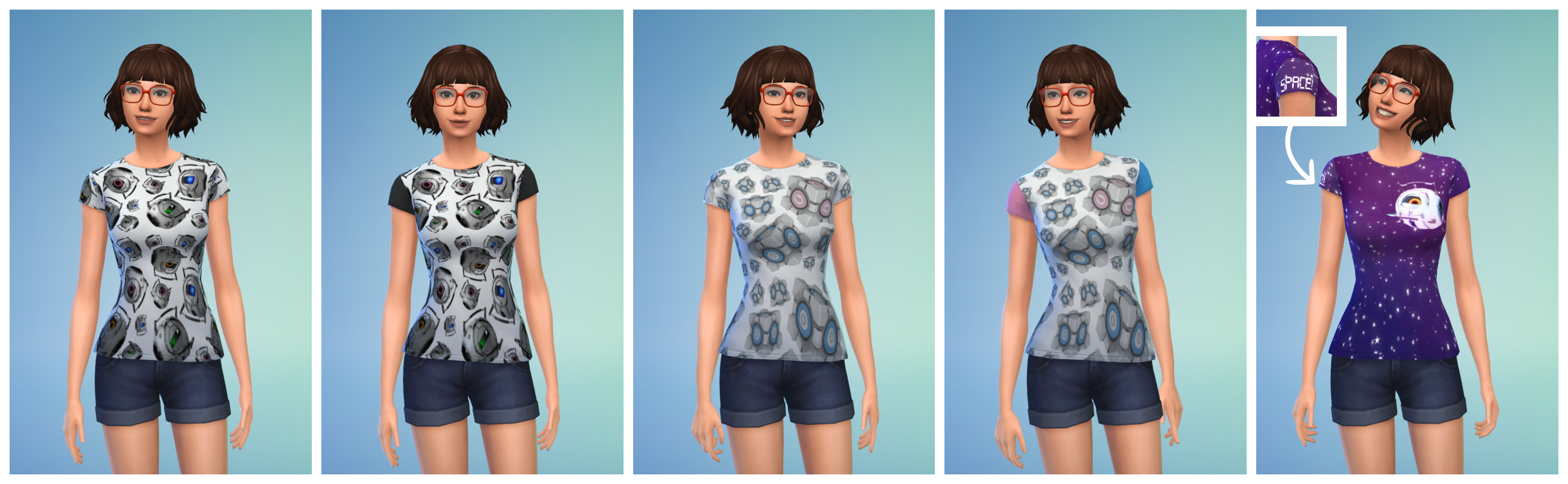 If you want I'll make a male version. Let me know in the comments.This set includes a shirt with 10 different swatches, all Portal themed for females (from teens to elders). They can be found in the top section, t-shirt section.
