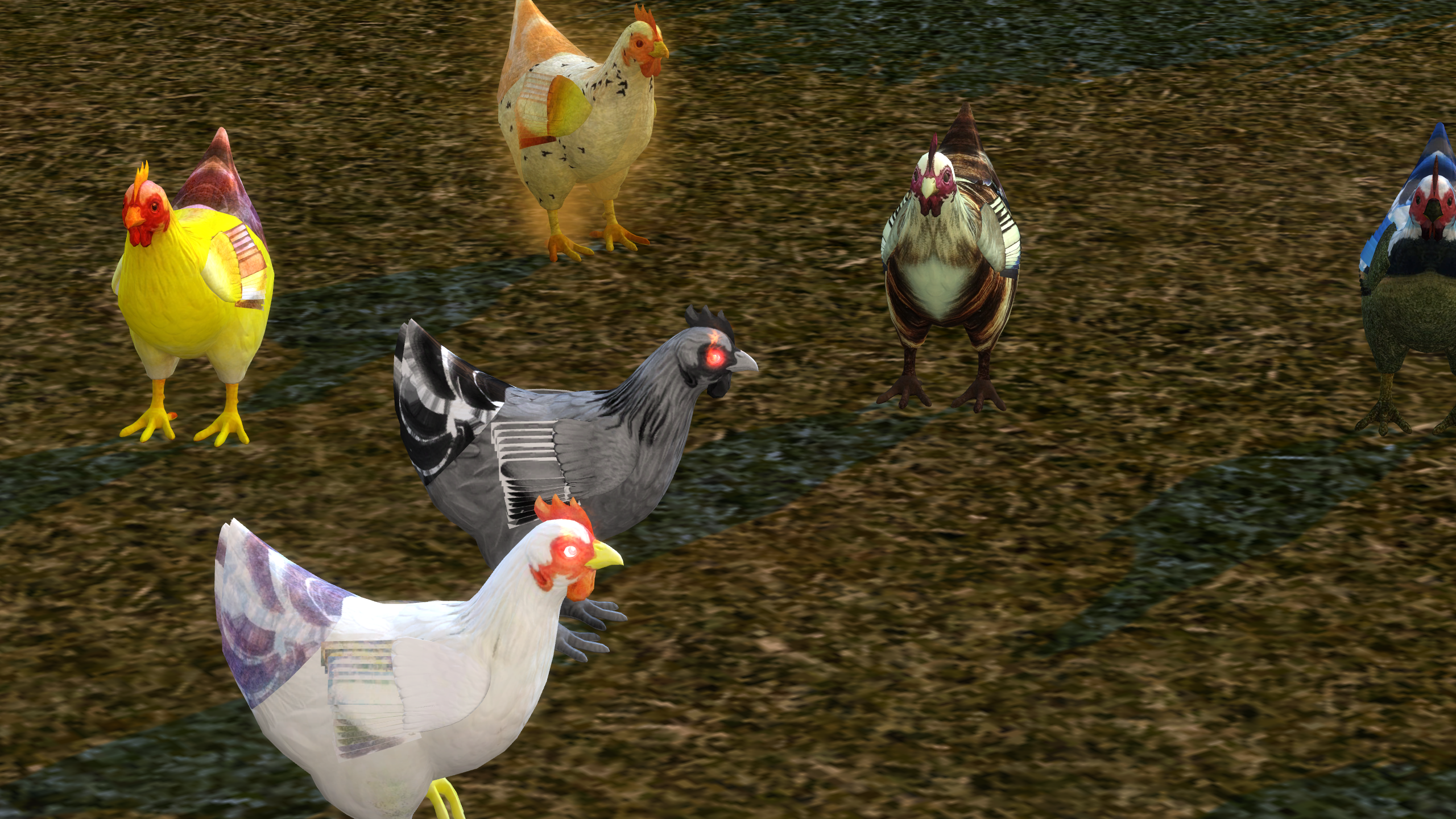 These are a mix of very random chicken and rooster recolors for you to enjoy with your new Cottage Living Expansion Pack! This is my first recoloring I've ever done and I had lots of fun with it. I just wanted to make very random variety of chickens. These lean more towards the fantasy look and I like that so I hope you like that too. One is a golden chicken while two of them are of the evil variety! Hope you enjoy!