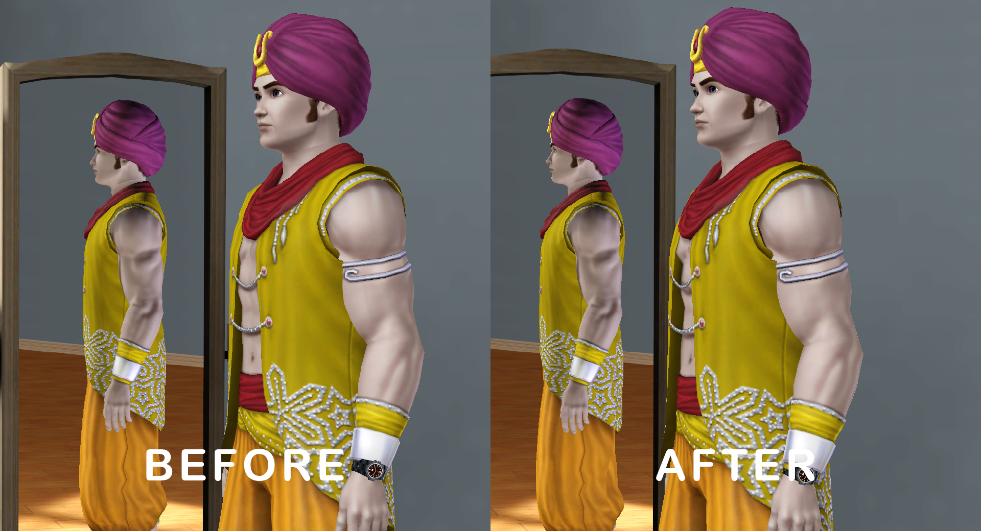 The purpose of this outfit is to maintain the continuity of the morph. Now, your fit/muscular Genies will retain the results of their hard work from the gym!