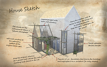 I made a challenge to myself to create a story to my building, not a story that you have to read, but instead visually experience. You can tell by the odd but carefully made design choices that this building has a history to it.