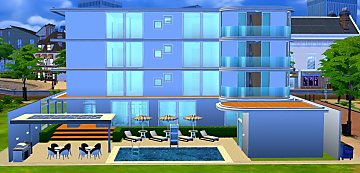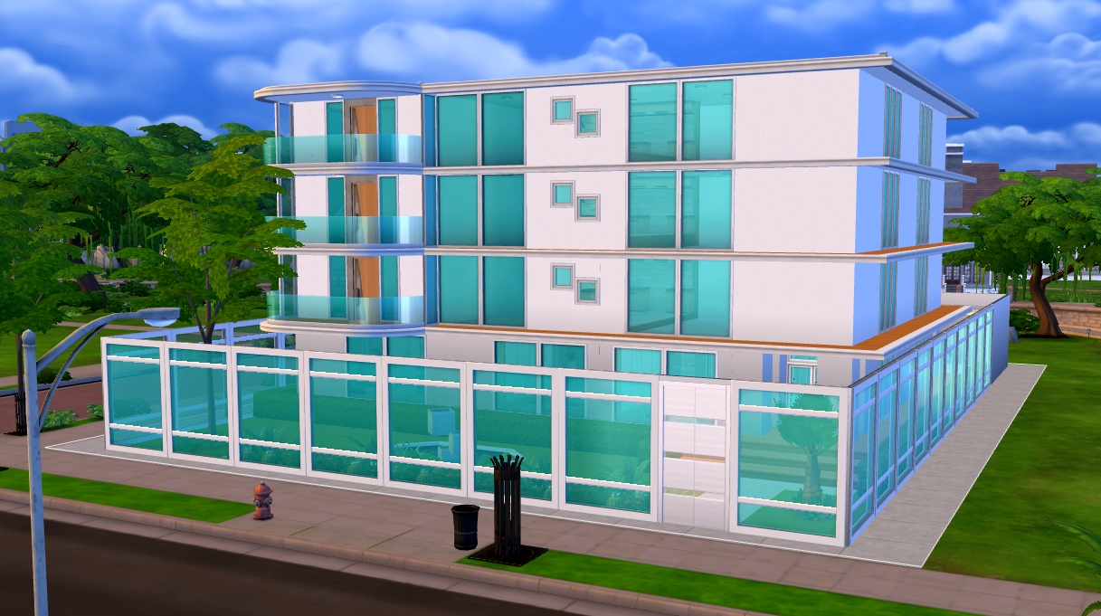 Today I'm bringing something that I started building a long time ago but only this week I decided to finish it. It's a very nice residential building that contains four floors (ground floor + 3 floors) and six apartaments, not to mention its recreation area with lots of things for your sims to do. The apartaments are unfurnished; they only have some items that usually also come in unfurnished apartaments in real life (toilets, sinks, kitchen counters, etc.). On the other hand, the common areas of the building are fully furnished and ready to be used.