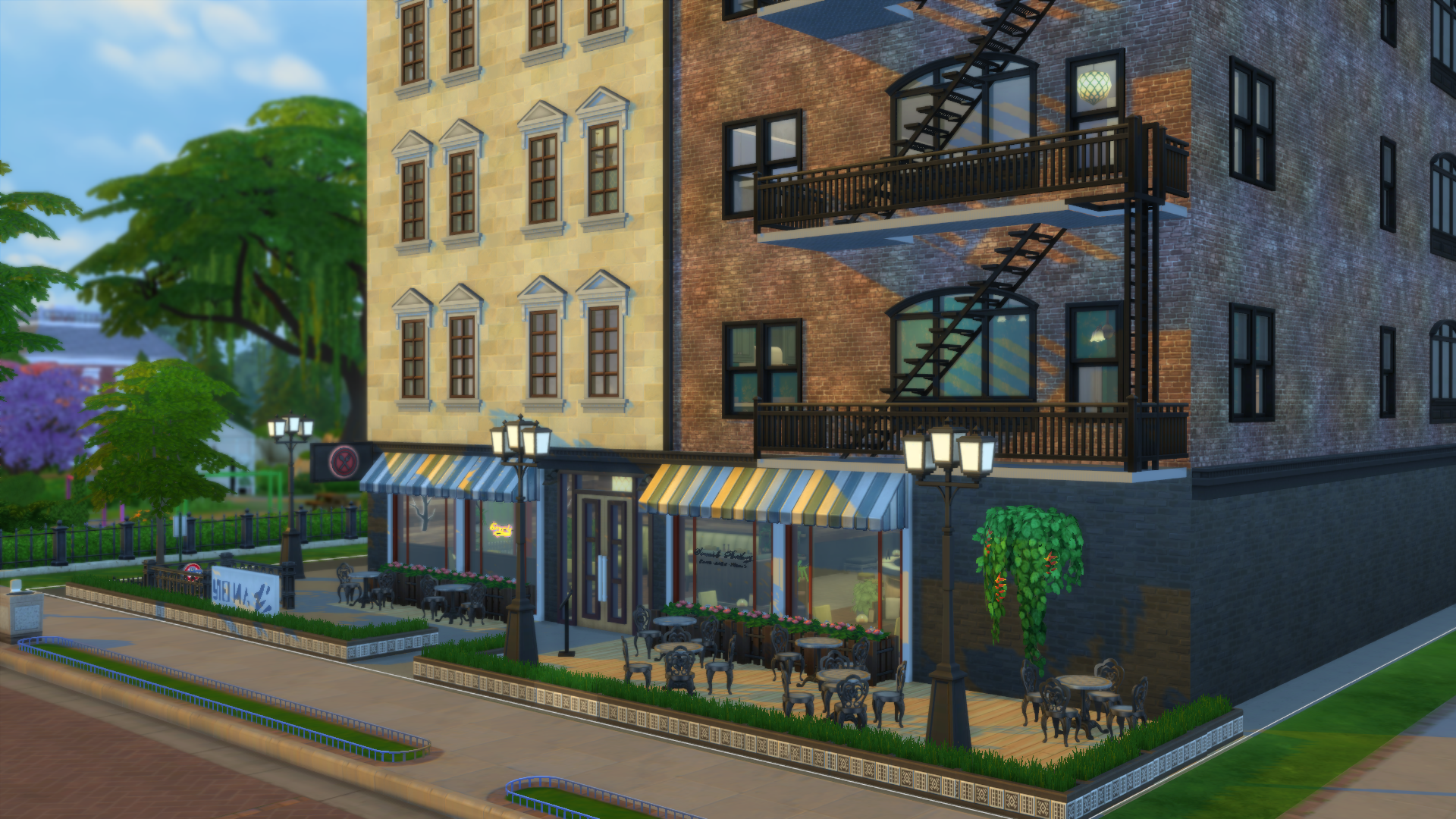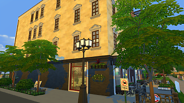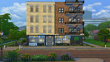 Since there is no way in game to have an apartmentbuilding that also has a functional restaurant this was the only way I could figure out how to make it. It is up to you how you want to play the lot. It is zoned as a commercial lot and restaurant so that you can use the bistro as intended.