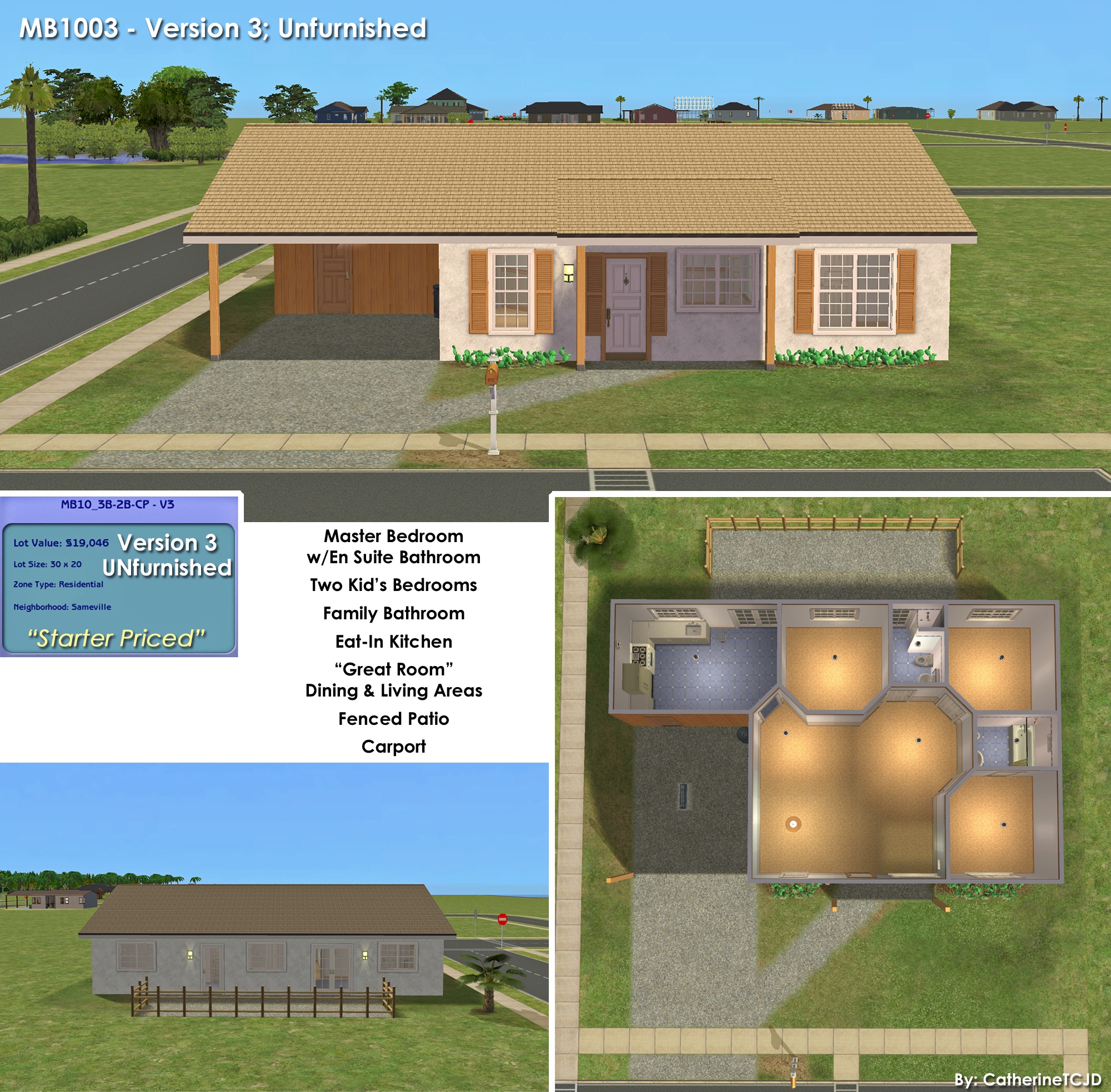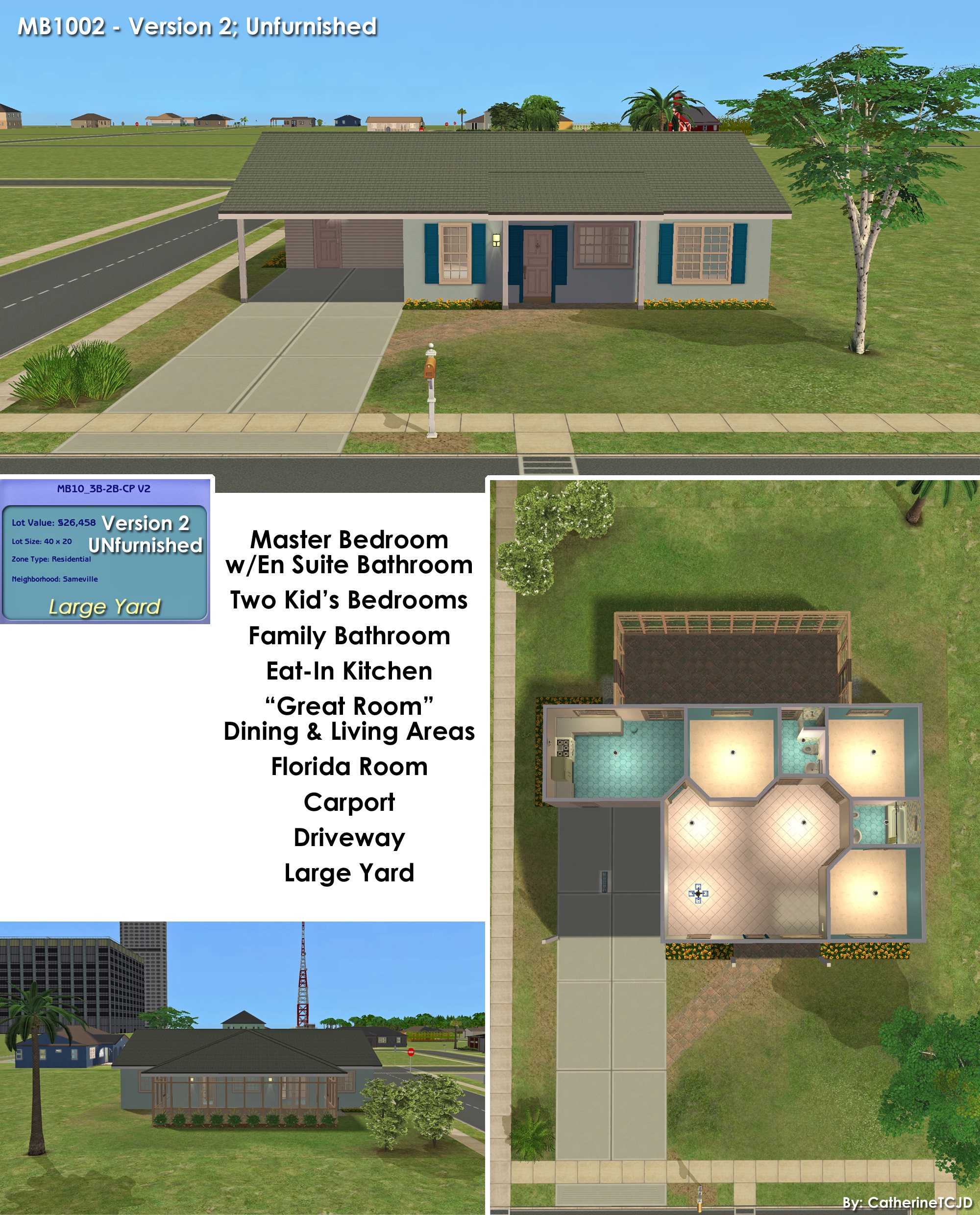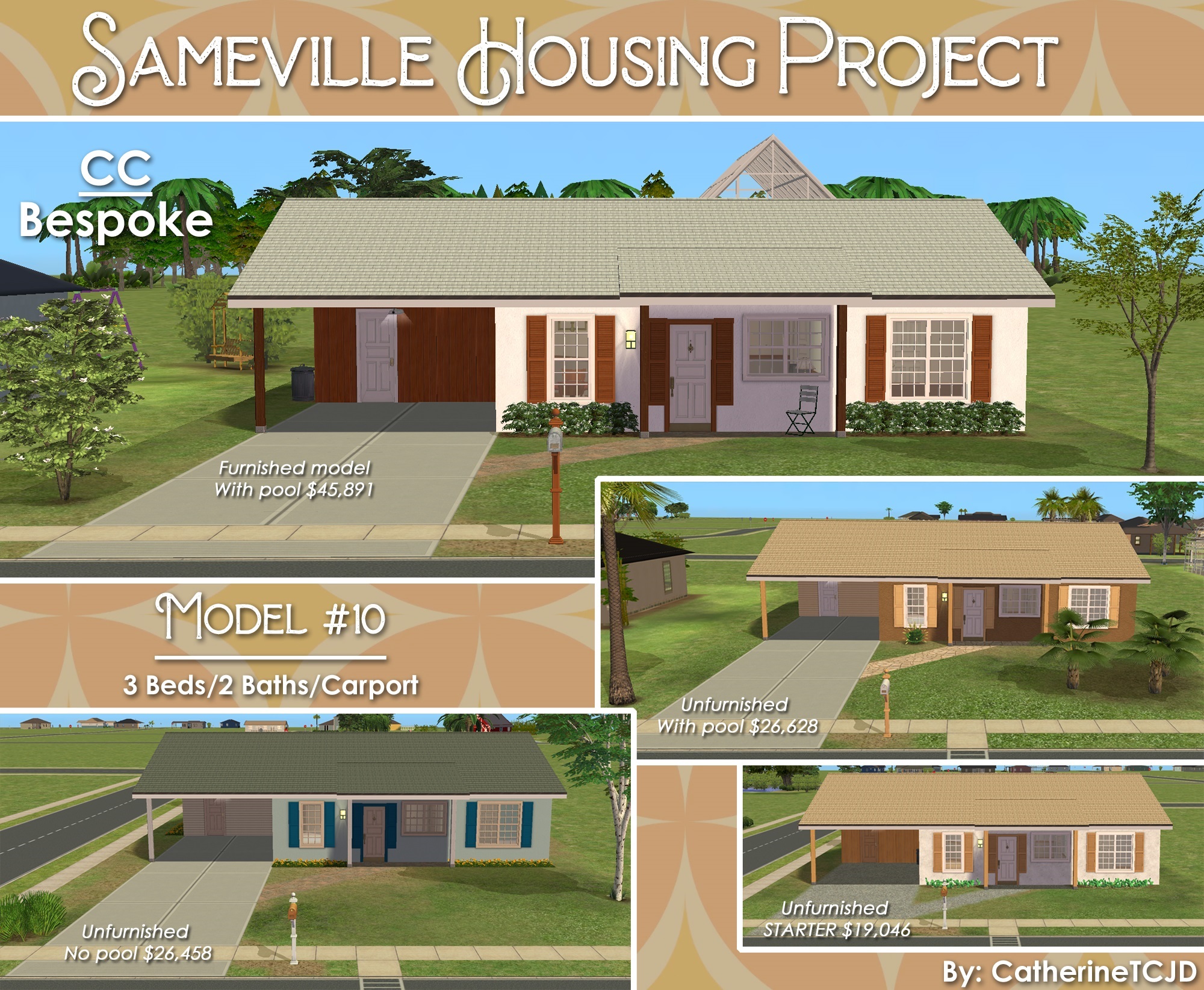 Sameville ~ House Model #5: 3B/2B/Garage-or-Carport - Bespoke CC - Five variations.