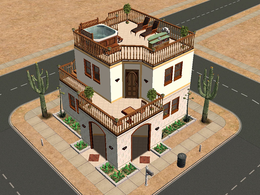 #Moroccan, #loft, #base game, #1x1, #Angella Simmer, #small, #tiny house, #Moroccan style, #terrace, #corner lot