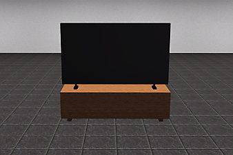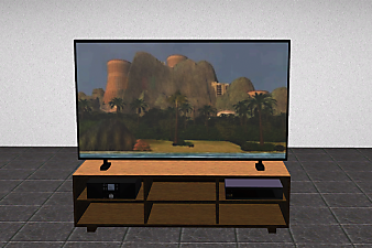 This TV is a remodeled version of the 36" HiFi Plasmondo TV, modified with a larger 40" screen, modernized stands, slimmer body and higher fun score - level 8. The package includes three fully recolorable channels - one for the TV's body (red channel) and two for the module table - green channel for the rafts and blue for the outer shell of the module. There are three presets included - wood, marble and white finish.