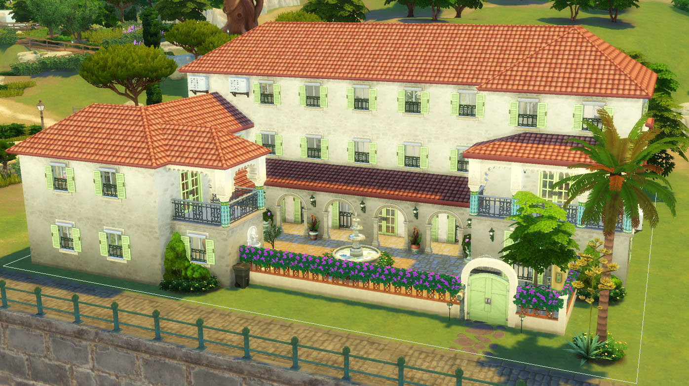 I built this house inspired in those beautiful hispanic villas we see in movies and stuff. I put green windows and doors just to give it a charm, even though I know this kind of house usually has them in standard wood color. It's a very big house with five bedrooms, and two of them are simpler than the others because I imagined they're for employees/butlers.