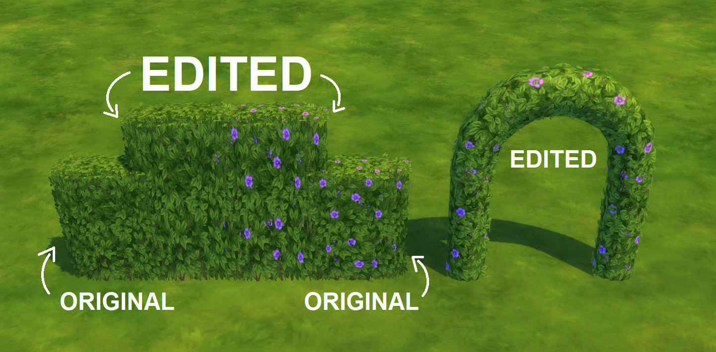 While at it, my attention turned to the hedge gate, like why is there only one version to match the plain hedges, and not the flowery ones? Turns out, it has the same exact texture as the plan hedge, so all I had to do was to extract the texture from the flowery fence and implant it into the gate. It took less than a minute. Come on Maxis!