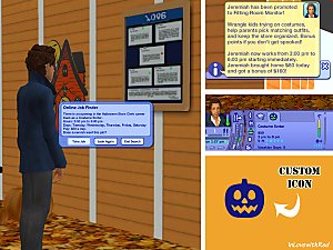 Job titles include Costume Sorter, Fitting Room Monitor, and Salesfloor Ghoul. Each level has their own chance card. It is cloned from the 3-level Slaker career but I've made several changes including only Energy decaying.
