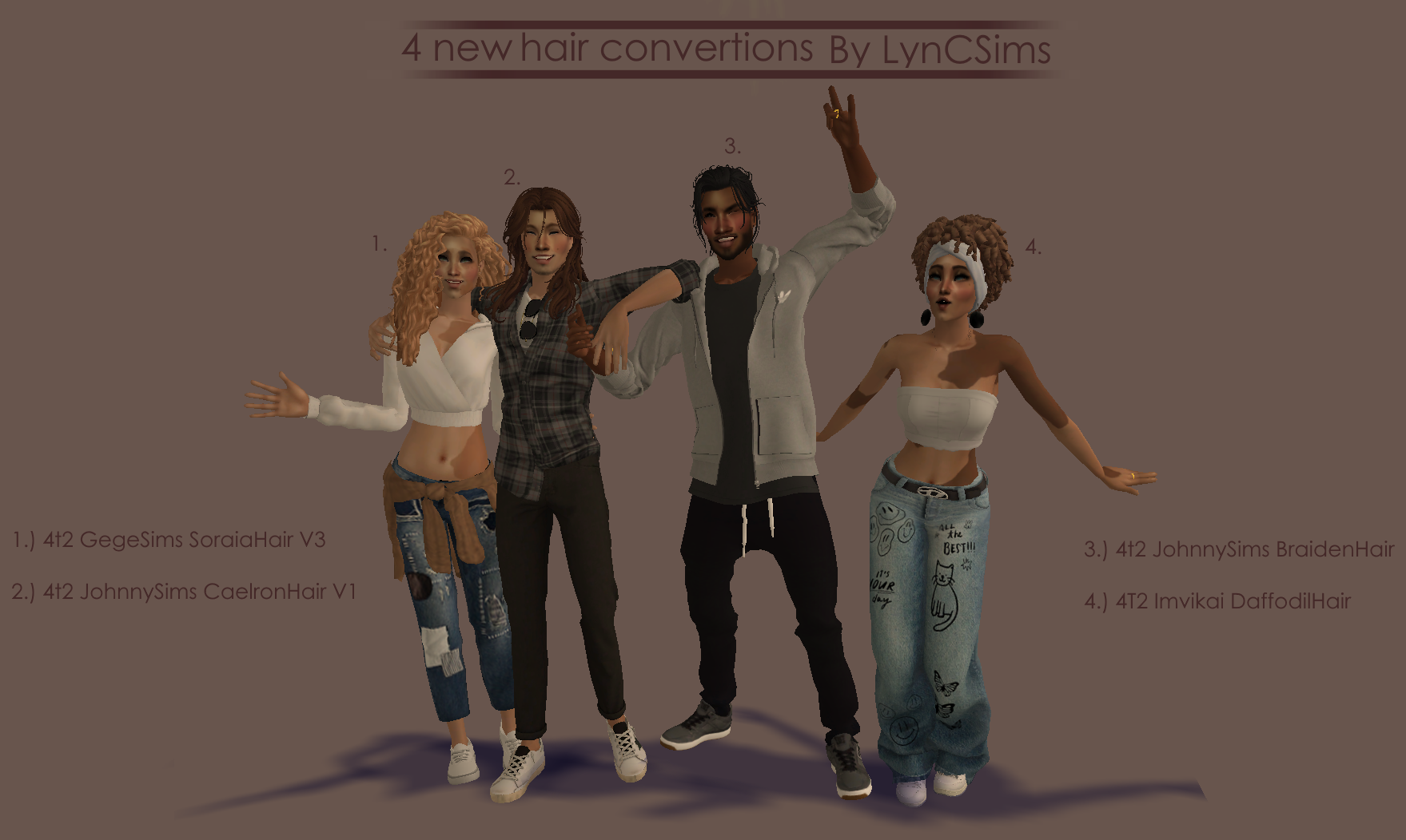 I've converted four new hairstyles. Two from JohnnySims, one from Imvikai, and one from GegeSims.