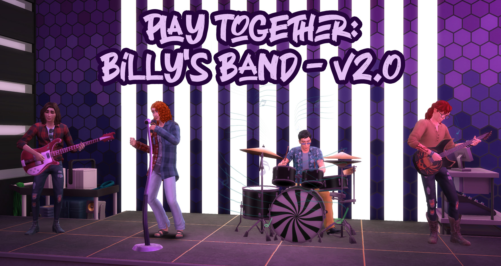 Tired of no bands expansion pack from EA in sight? Sick of struggling to get your bandmates to play instruments at the same time and the resulting cacophony when they do? I am too, so I made a mod that lets aspiring rockstars play multiple instruments simultaneously together at once! Choose from a setlist of Simlish in-game rock/alt songs and command your bandmates to play together with a few clicks.