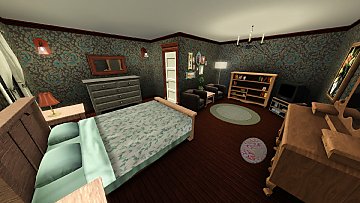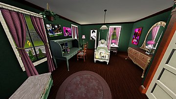 The other bedrooms on the second floor are spacious and bright. Beautiful windows let you peer out and check on your neighbours. Do they have as nice a home as you? Probably not! Laugh at them as you count your stacks of Simoleons.