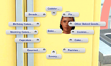 Baking is a 10 level skill, and is primarily gained by sims making baked goods under the new “Bake…” pie menu option on refrigerators, or from reading baking skill books found at the bookstore.