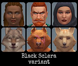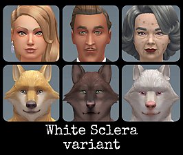 There are two versions for this, one white sclera variant and a black one. Each version comes as a default replacement or as an add-on. Only use one replacement at a time, as they override the same thing(that goes for any default replacement, not just this one.)