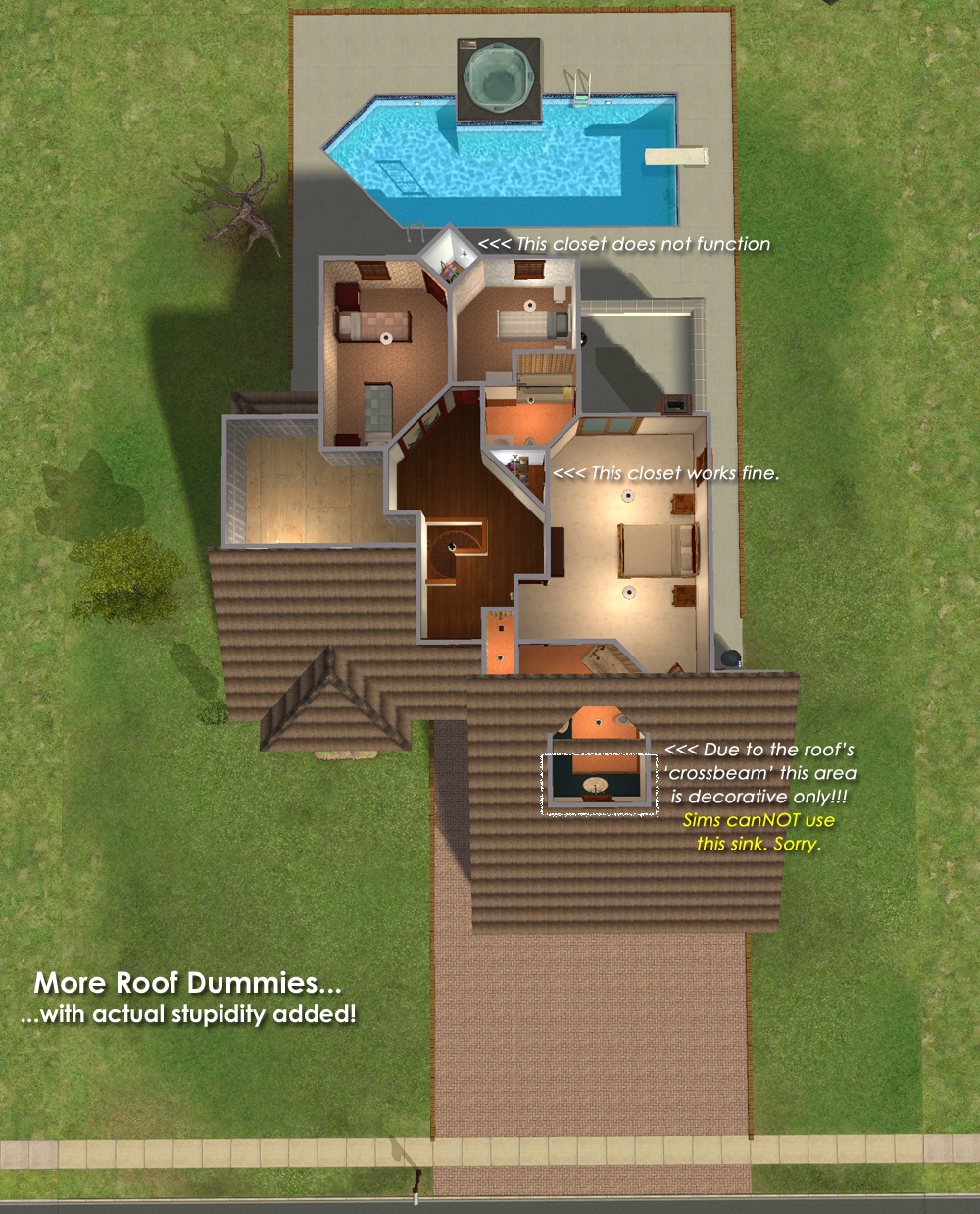 TS2 roofs are very limiting, let me just say! And CC/mods will fix several silly things (like closets) up nicely.