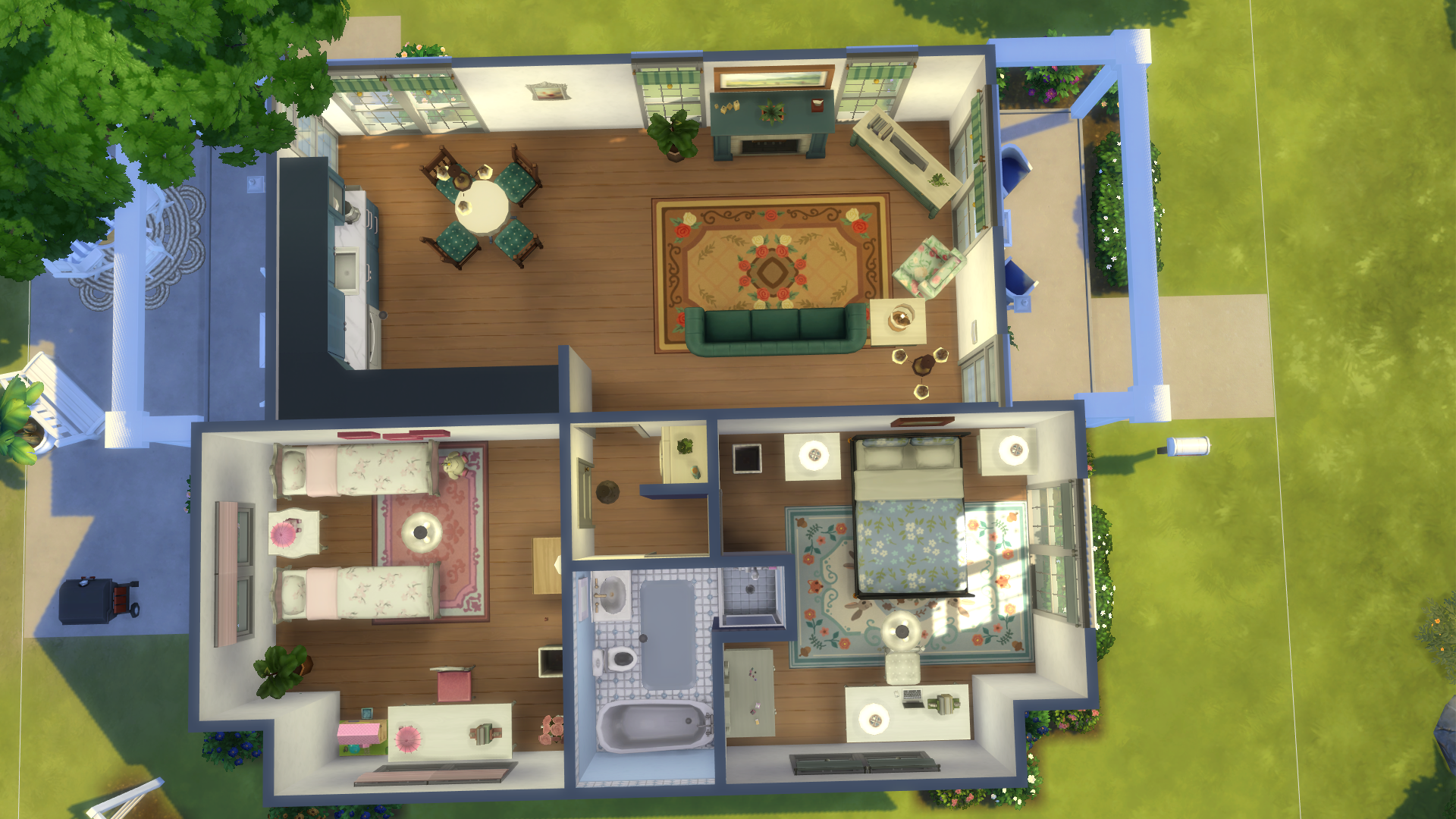 Small cottage for two, with skill objects. Cottage is painted with the country colors of creamed butter and dark mint. more...