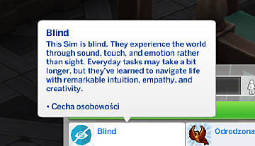 It is a lifestyle trait availble to all age groups. Slightly hinders skill acquisition. It adds a few social interactions, a few additional moodlets, including one permanent moodlet that makes the Sim constantly stressed due to their limited perception.