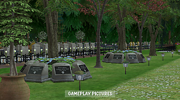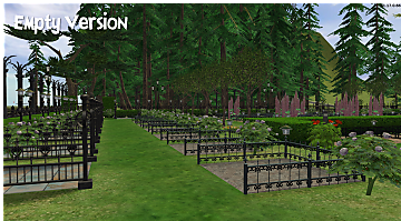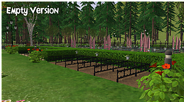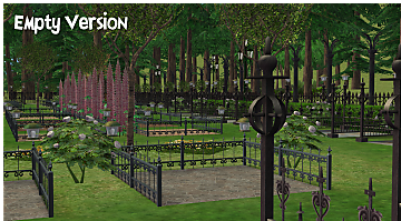 - Empty Version: A empty, ready to use graveyard with 160 four-tile plots and 52 two-tile ones. Decorated with lighting and landscaping. This version is completely cc-free.