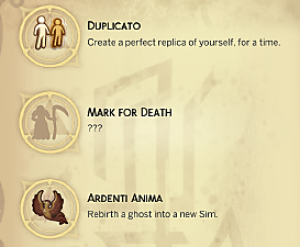 Unlike fairies with the LDF mod, spellcasters can only cast Ardeinti Anima on ghosts, but they CAN cast it on themselves if they're dead. The normal outcome will reincarnate the ghost, and the charged outcome will also complete the ghost's soul's journey... but this spell is temperamental, and likes to fail a bit more than others. Sims with the reborn trait have better success odds, but the only way to always guarantee success is to have the "Grim's Right Hand" trait.