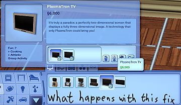 Additional Note: Apparently, there are two versions of the PlasmaTron TV in the Store: One being if you download the TV separately and the second one being if you install it with the Full Bayside Set. The first version does not display any text at all in Buy Mode, the second one displays the base game TV text. However, no matter which of these two versions you have installed, this fix should make both of them display the correct text in the end.