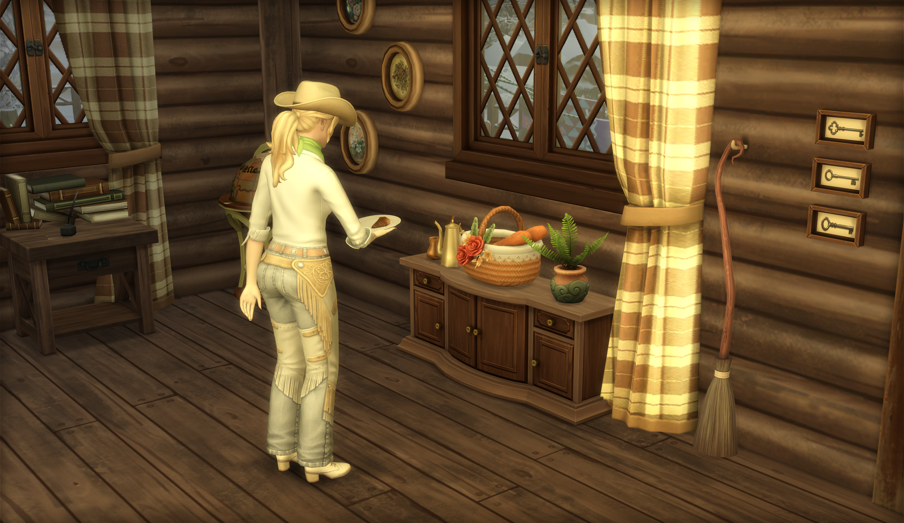 If your game is prone to lagging like mine is, there may be a delay between when your Sim grabs a serving, and when the plate and/or food actually appears in their hand. This is a problem with the in-game lunchbox, too, so please forward your complaints to EA. Keep in mind that the Breadbasket utilizes custom coding and may break after an update! Always keep these sorts of items in a separate folder, so that if you start getting errors, the likely culprits are all in one place.