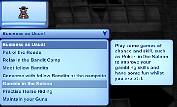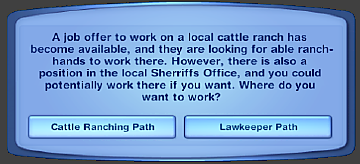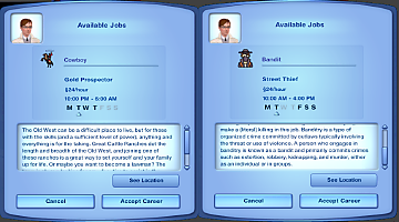 This mod adds two new Old West-era themed careers to the game: A Cowboy Career and a Bandit Career. Both Careers have ten levels.