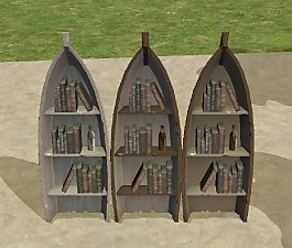 Converted Bookshelf is a boat shaped bookshelf with 3 wood options.