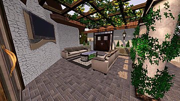 | Some small changes: Removed office couch and added a table/chair to make the office feel more officey, moved front courtyard ground lights over a tad- fence posts were partially blocking textures.