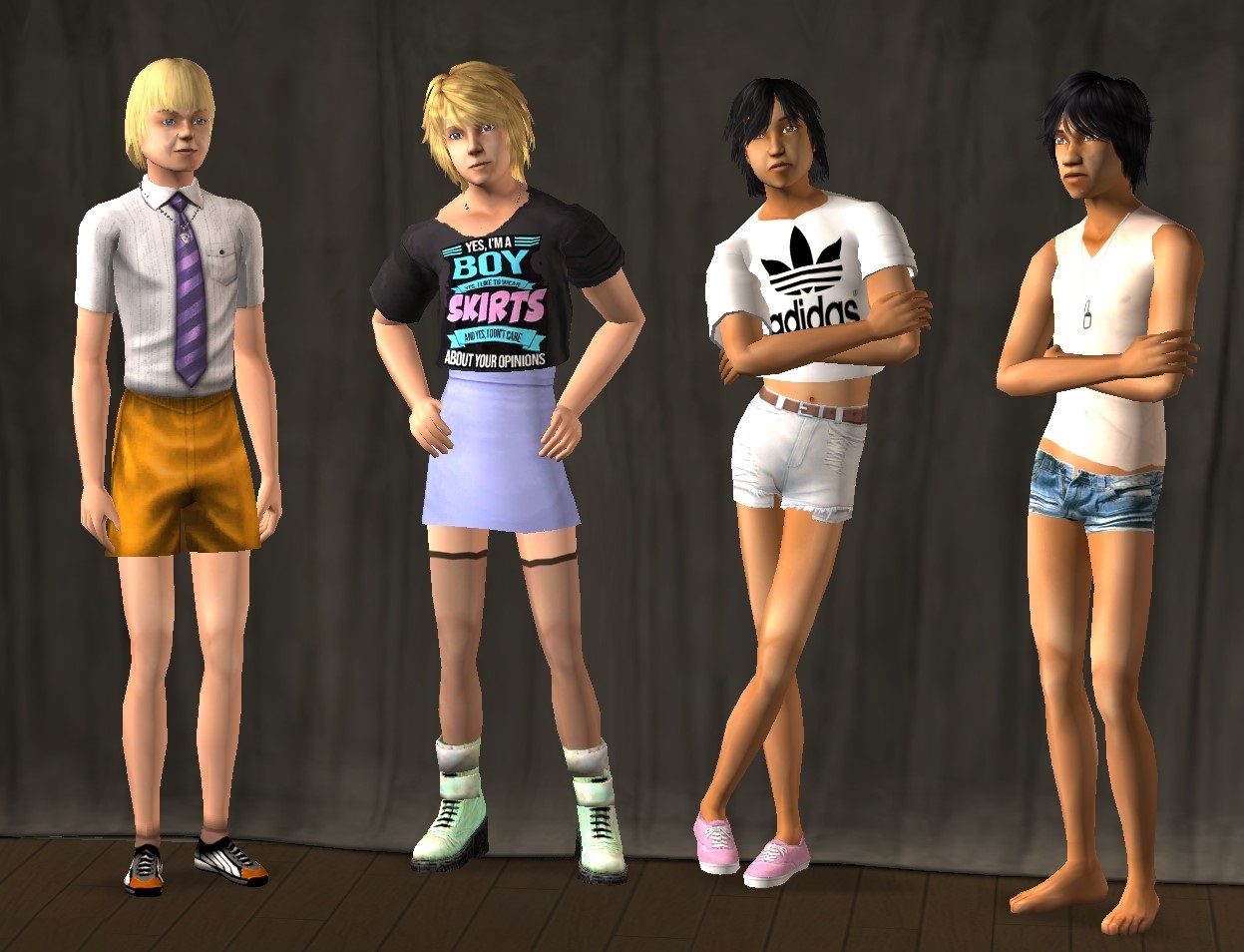 I've downloaded the mini skirt and crop top for him to wear in Autumn, maybe (they wear normal clothes outdoor then).
