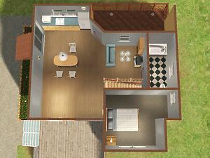 Two-story house furnished for up to four sims (three kids/adults, one baby/toddler), with a several spare rooms in the basement more...