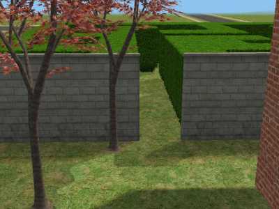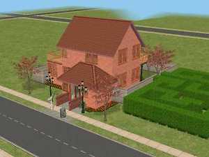 My first lot on MTS2 is a cozy little brick home, suitable for one or two sims. Cherrywood is named for it's magnificent cherry trees around the house that blossom all year round. The charming home includes beautiful glass doors, a hedge maze, a wrap-around balcony, and a "secret garden" behind the house enclosed by stone walls. The house is relatively small, with a kitchen and hallway on the ground floor, and a bedroom and bathroom on the second floor. The kitchen doors open into the secret garden, and the balcony is reachable from the second story bedroom. I do not have any expansion packs so it will work with all (or none).