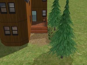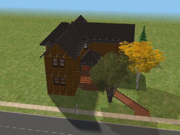 The Sims 2 roofing offers no diagonal roofs over the middle diagonal bit, so that's why the roof looks pretty disgusting. But the easy floor plan makes up for it! I've taken advantage of the split level avalible in OFB with the stairing.