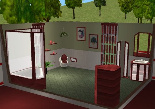 2 more recolors of BitzyBus's Pentago Bathroom- Green Marble and Redwood