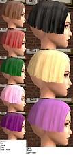 -Unlike the Maxis bob cuts, this one has no bangs and the back is shaved to a stubble. The stubble will match the hair color on the natural colors (blonde, brown, black, and red), but will always be black on the unnatural colors.