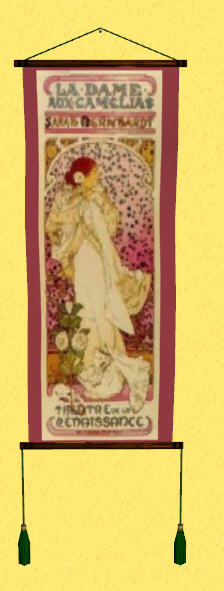 The AuxDame Camelias is a Theatre poster that features Sarah Bernhard.