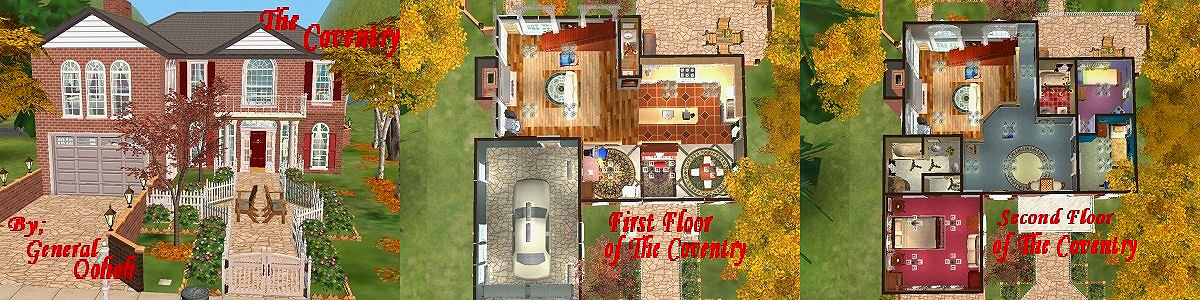 The Coventry is a beautiful home set in Autumn. When you enter the lot, you see the many leaves and fading colors of trees. With it's own courtyard and little portico you know you want to live there before you even step inside. Inside you have a lot of space. Like a dining and study and a well sized kitchen. There is also a nice two story family room in the corner of the home. Going upstairs you will find three bedrooms and a spacious loft. The master bedroom is defenetly one of the best rooms in the home as it has the bed, a couch and bookcase. The home also has a great backyard with a pool and leaves every where to set that peaceful and beautiful autumn setting. I hope you enjoy it.