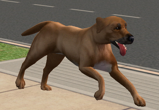 Here is a rare breed Chinook, an excellent sled dog founded in 1917 in New Hampshire. I happen to own one of these extremely rare breed of dog. They are very strong, very, VERY intelligent, and are also very friendly and great house dogs. And most of all one of the most beautiful dogs you'll ever lay eyes on. So, of course, as soon as I got Sims 2: Pets, I made a replica of Trixie, my Chinook.