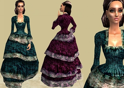 Recolours: Madam Stride Purple Gown (7DmamStridePuprle.zip). Madam Stride Green Gown (7DMadamStride.zip).