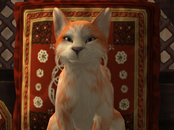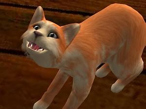 This cheeky feline goes by the name of Pooka. She's a "Sly Tangerine" - A very well known cat breed in the Sim World.