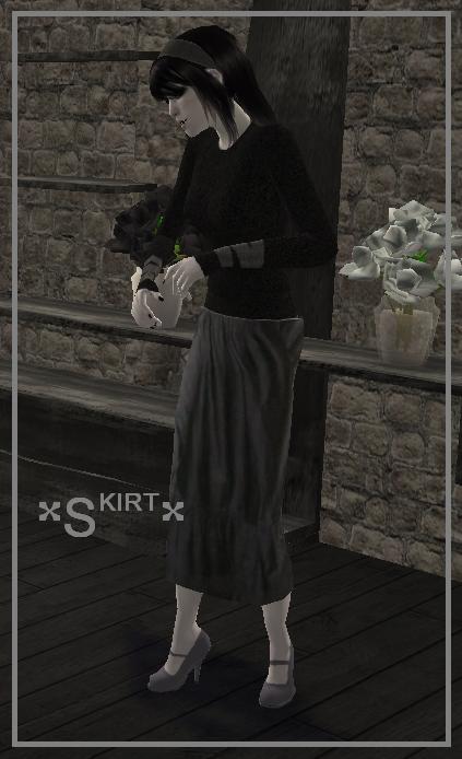 Skirt3 is just a plain black skirt with grey cut off tights. I felt I should provide this because the black-ish skirt doesn't match with black tops. And what goes best with black? That's right! Grey.