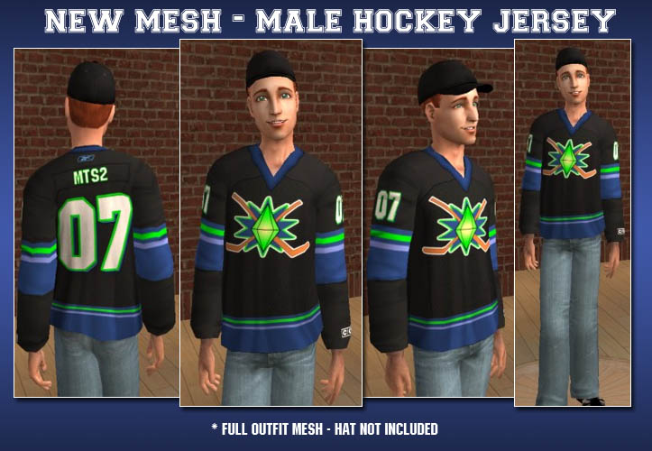 Okay, okay. It's nothing to get too thrilled about. I ended up modding a University Mesh (the hippie outfit) to suit my needs for the upcoming NHL jersey sets. The key differences are: