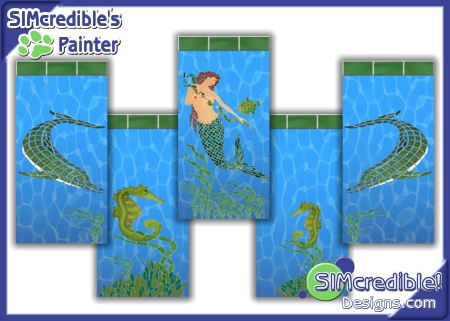 This set can be used in any order, mix it up any way you like and it still looks and tiles perfectly. There are dolphins, turtles, fish, kelp, seahorses, coral and a mermaid. There is also a base water panel with no sea life on it. This set looks fantastic in swimming pools as well as on regular walls. Any unwanted panels are easily deleted from inside the game > build mode.