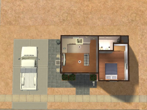 If someone is wondering why there is an emty 1x1 room between bathroom and bedroom: It's just to make the house look more well-formed and to stop the auto-roof from doing silly things.