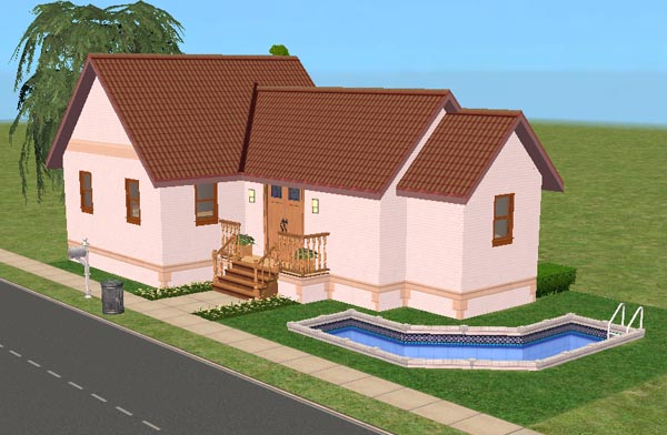 After building and bulldozing for three weeks, I finally came up with this! ^o^ It's not as exciting in design as the other houses (in my opinion ^^; ), but it was really nice to be able to move the sims in and start playing right away!