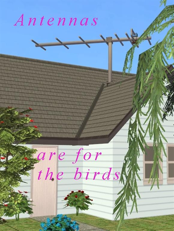For users of Seasons or later expansion packs, you will be able to place the antenna directly on the roof, as before. The antennas have also been made attractive to lightning, now as attractive as trees. However, just as with the Seasons lightning rod, lightning will not strike these antennas if they are placed on a sloping roof. It appears that the game considers that rooftop objects are actually located inside the building, and lightning is not permitted to strike objects located within a building.